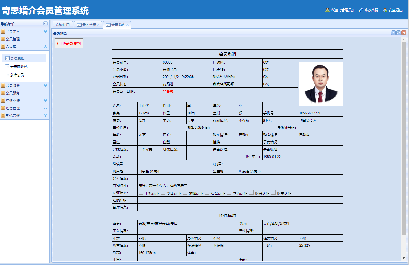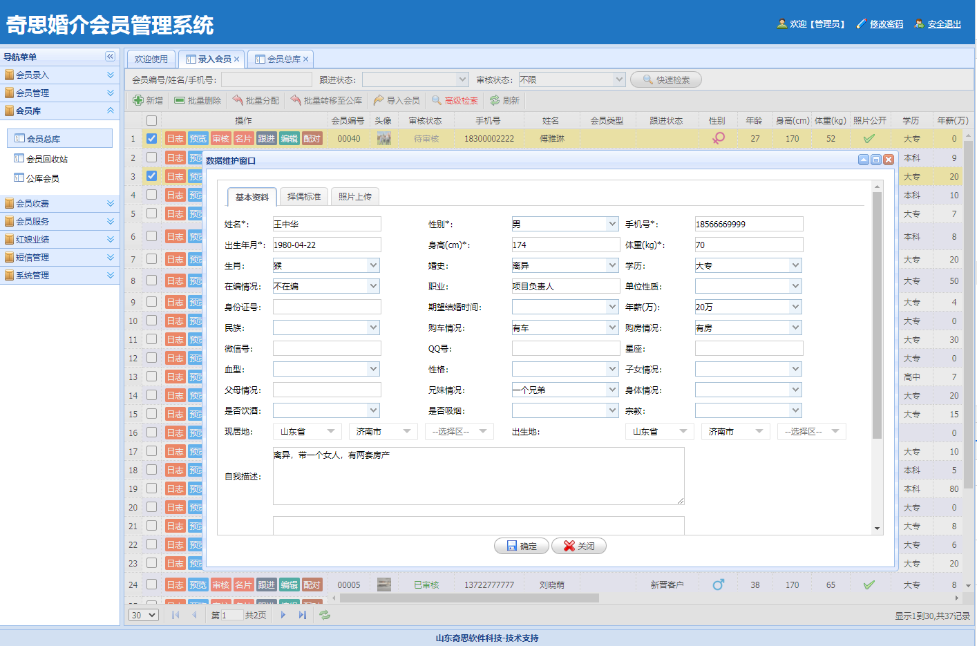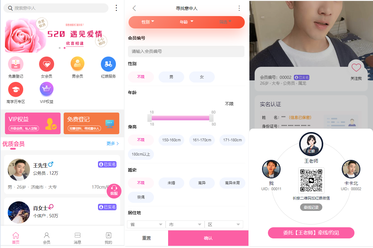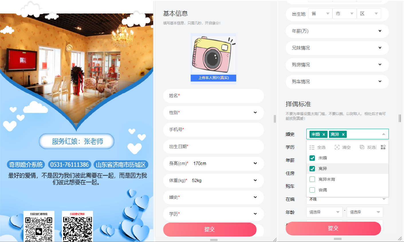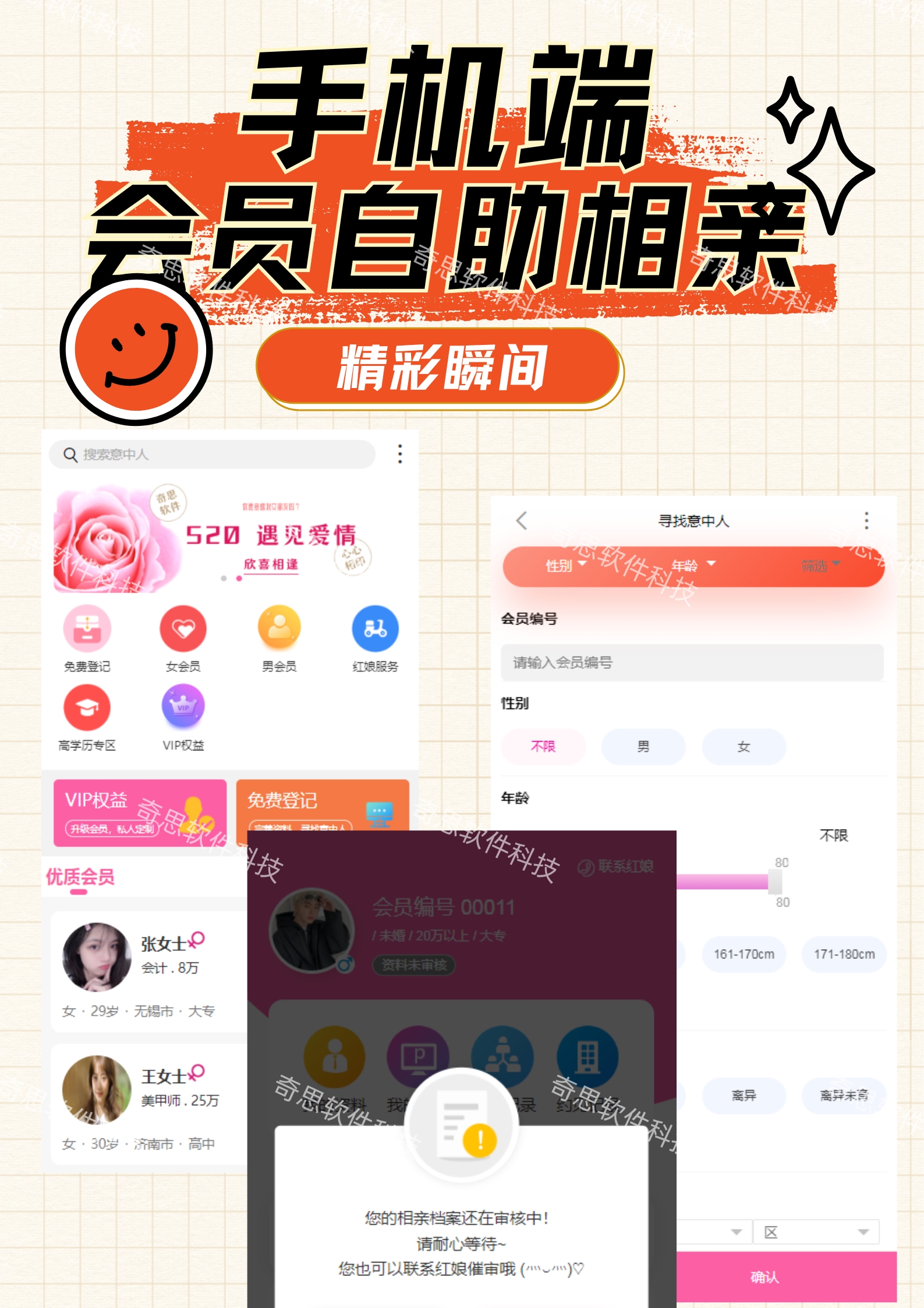 让您拥有一个自己的婚恋相亲平台,会员在线登记。